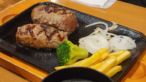 日曜日のお昼に伺いました。 幹線道路からのアクセスはよくて駐車場も広いので気軽に行けますね。 お昼時でしたが店内はそれほど込んでいなくて、この時期なので逆に安心です。 注文は自分は肉の気分ではなかったので(何でここに来たというツッコミは無しで・・・)茄子のナポリタン(ナポリタンが好きなんです)妻と長女は煮込みハンバーグのようなもの(名前忘れ)、次女はカットステーキと俵ハンバーグセットをチョイス。孫はお子さまセットのうどんタイプ。 あと、カリカリタイプと通常タイプの合わせポテトフライ。 妻と自分はサラダバイキングも追加。 最初にポテトフライがきました。これはカリカリタイプが旨い!全部これにすれば良かった。孫もお子さまセットには目もくれずこればかり食べていました。 茄子のナポリタンは普通です。思っていたナポリタンとは違いますが細麺でしたので自分の好みとは違いました。 煮込みハンバーグは妻と長女が美味しいと絶賛しておりました。 また、カットステーキと俵ハンバーグもメインの商品だけあり次女が無心にほおばっていました。 問題はサラダバイキングですが、中々補充がされず、空の容器が目立ちあまり食べることが出来ませんでした。今回はキノコフェアーでしたがキノコのサラスパがありましたがあまり美味しくなかった。普通のマヨネーズベースのサラスパが良かったかな。 家族で行くにはコスパもよく肉メインで行けば美...