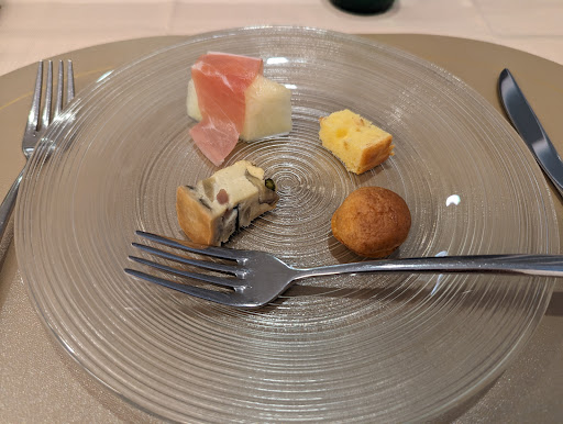 Read more高評価の佐倉の老舗フレンチのシェ・ムラ。 ディナーコース6000円を予約し訪問。 本日のメニューは 〈アミューズ〉 ・グージェール 、キッシュ、ケークサレ ・会津産ホワイトアスパラガスのソテー 岡山産サワラのミキュイ 新玉ねぎとビネガーのムース 〈オードヴル〉 ・鳥取境港サーモンと葉玉ねぎのプレス サワークリームとキャビアを添えて ・リードヴォーとラングスティーヌのソテー 〈お魚料理〉 ・焼津産金目鯛のパイ包み...