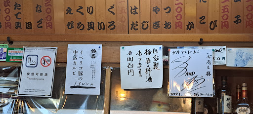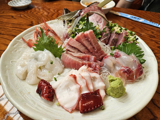 2025/5訪問 一度行ってみたいと思っていましたが、なかなか伺えず。 先日初めて訪問しました。 店前に3台ほどの駐車場がありますが、大きな車ははみ出してしまうかと思います。 母の軽でしたので、余裕でした。 店を前にし右を向くと、緑のフェンスに囲まれた駐車場があり、そこに何台か止められるそうです。 入店し、座敷に案内されました。 ご夫婦で営業されているのかな? 女性の対応はとても丁寧で、感じが良いです。 注文は、刺し盛りやお寿司、おつまみを数点。 お刺身は種類も豊富で盛り付けも良く、どれも美味しいです。 はまぐりの酒蒸しは、薄味ですが、大きなハマグリが3個入っていて十分です。 お寿司ですが、ネタはどれも美味しいのですが、シャリの酢がかなり薄く、普通の白米のようでした。 これで、シャリがほのかに温かい、酢がきちんと効いている酢飯であれば良かった。 問題は、掃除がされていない点。 トイレに立った主人の洋服に、蜘蛛の巣に絡まった埃が・・・。 なんとなくテーブルの下をのぞくと、テーブルの脚に埃まみれの蜘蛛の巣が。 座布団もカバーが染みだらけで、ちょっと嫌でした。 飲食店で、しかも生ものを扱うお店なので...