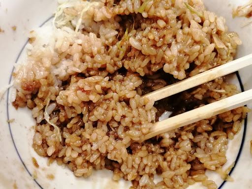 とんかつ・けら揚げ・焼肉の3種の豚肉とキャベツとマヨネーズがのってる丼です。 ボリュームは有りますが3種類入ってるので肉厚は薄目な感じです。 特に唐揚げが薄く。肉も硬い感じでいまいち……… 焼肉は玉ねぎも入ってるがタレは濃くしょっぱい……… とんかつも薄いがソコソコ食べられる感じでした。 食べると焼肉のタレが掛ってる部分はしょっぱい感じで焼肉の肉にタレが余り絡んで無い肉が有りその肉は味気無い焼いた豚肉でした。 僕的にはマヨネーズは要らない、そして焼肉のタレの塩気を和らげる感じで甘みは増やして欲しくない味にして 肉が固くならないでジューシーな肉で頂けたら美味しく頂けると思いました。