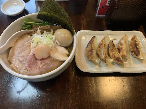 Read moreお昼前に到着し入店しやや満席気味でしたがテーブル席に着席 特製醤油ラーメン(大盛)と餃子を注文 こじんまりとした店内で数分待つとラーメン着丼 特製頼んでよかった。チャーシュー3種と味染み染みメンマ、味玉、薬味ネギと板海苔、あと水菜かな? 具沢山を掻き分けてスープを一口 透き通るような薄すぎず濃すぎないあっさり醤油が口の中にひろがり旨味が染みて来ました。 麺は細麺、スープも程よく絡むストーレート麺 アッサリの醤油味を邪魔しない小麦感が癖になり歯応えも個人的にはちょうどよく美味しくすすり続けられました。 あっという間に完食しましたが、食べ終わる頃には麺大盛にしたので少し味に物足りなさを感じてしまいました。個人的にはもう少しパンチがあってもいいのかなと思いましたが飽きずに最後まで完食。 餃子は皮モチモチで餡も皮の甘さと丁度いいバランスで箸が止まりませんでした。 連れが鶏白湯を頼み少しシェアしてもらったので 次回は鶏白湯BLACKを頼みたいなと思い退店。 店員さんの元気のいい挨...