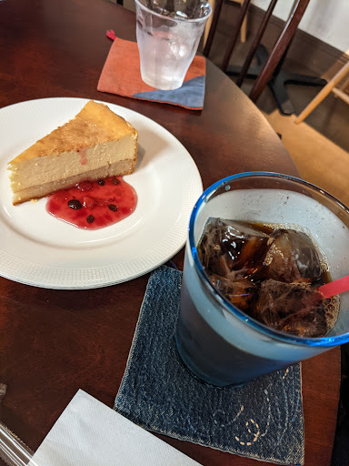 注文したのはマンデリンとレアチーズケーキです。マンデリンはガツンとしたコーヒー感があって私好みです。 ケーキも美味しいです。