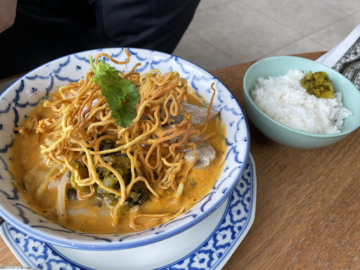 2月の平日のランチタイムに友人と行きました 人気のあるお店ですので念のため予約をして行きましたが、我々が入店してしばらく経つとやはり満席になりました 駐車場はお店の真横に3台ぶんありますがちょっと狭いです 第2駐車場がありますがちょっと歩きます(オレンジ色のお店のロゴの看板が目印です) 我々は第2駐車場に停めその旨を申し出ましたらドリンクを1杯いただけました 自分はセンレックルークチン(タイ式鶏団子フォー)を注文しました たくさんの白菜に軟骨?が入った大きい鶏団子と実にボリュームがありますが味はすっきりあっさりめですので、パクパク食べることができました せっかくなのでKIDSサイズのパッタイ(タイ式焼きそば)もいただきました 日本人にも馴染み深い食材や味付けですし日本の焼きそばと違って油っこくないので、メインとしてはもちろん副菜としてもおいしくいただけると思います 店内はアジア料理の店にありがちな「エキゾチックすぎて入りづらい」ということはなく、むしろその辺のカフェよりもお洒落で良い意味でタイ料理へのハードルが下がってよいと思いました 料理もちょくちょく新しい商品が出たり、メニュー表もタイ料理初心者にもわかりやすい添え書きがしてあり、初めて見た料理でも挑戦しやすくなっています 料理はありがたいことに全体的にボリュームが多めですので、シェアをしていろいろ食べていただきたいと思います 店のHPは新商品の案内や第2駐車場の場所などけっこう大事なことが載っていますので、来店を考えている方は見ておいたほうがいいかもしれません 所在地は駅からだいぶ離れていますが難点はそれくらいであとはほぼ文句無しです 前述の通りボリュームが多めなために2品で満腹になりサイドメニューやデザートが入らなかったので、また...