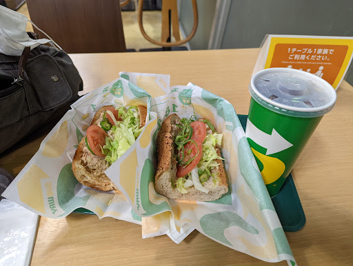 Read more凄い久しぶりにサブウェイに行ったら、サンドもスープも店員さんの態度もマズくてビックリした! あ~星一つもつけたくない!! 年配の男性の店員の方が対応して頂きましたが、笑顔一つなくモクモクと機械的に対応。テキパキなのは良い事ですが……私が順番通りに言わなかったら、強めな言い方でこちらから!みたいに言ってきた。しかも早口なのか、ハッキリ言って聞き取れない。バイトの男の子に対する感じもちゃんと教えもしないで、無言で仕事をこなす。もしその方が店長ならば、バイトで働く人がかわいそう。セットなど説明もなかったので、ドリンクがついてこなくてビックリした。もう、呆れてその店舗には二度と行かないし、サブウェイの良さが全く消えたお店だった。あのままその男性店員を放置してるのでしたら、お客様は来なくなるかもですよ。 現に行っ...