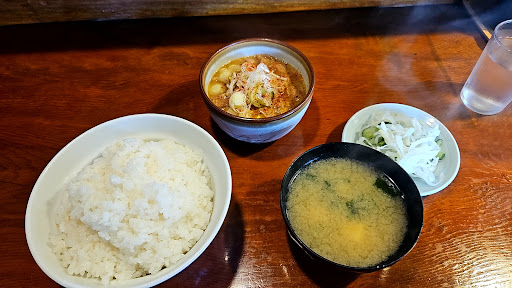 もつ煮込み定食が人気のお店です。店内は、昭和レトロ感のある佇まいで最高です。年配夫婦の方と息子さんでやっています。客層は、サラリーマンからガテン系の方まで色んな方がいます。 もつ煮込み定食を注文して来るまでそんなに待ちません。もつ煮込み、ご飯、味噌汁、漬物で850円になります。もつ煮込みはすごく柔らかくて臭みもまったくないです。もつとコンニャクとネギのシンプルながらバランスが取れています。ご飯は、ツヤツヤでやや大盛でもつ煮込をバウンドしながら食べるとすごく美味しいです。味噌汁はワカメの味噌汁でだしがすごく出ていて良かったらです。ラーメンなどいろんなメニューはありますがココのもつ煮込を...