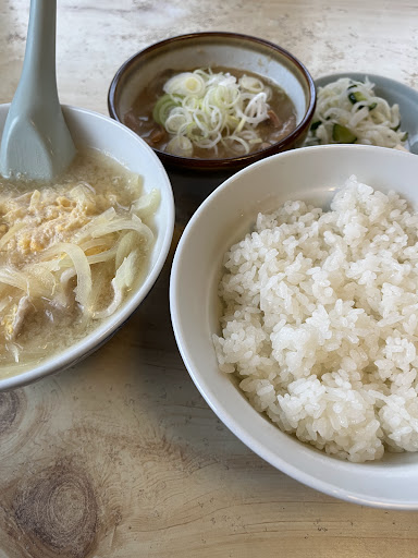 Read moreもつ煮込が美味しいとの事で1月中旬にランチ初訪問です。14時近かったので先客ナシ、日替りメニューからもつ煮込定食と追加でとん汁をチョイス❗️相方はチャーシューメンと焼餃子。 もつは評判通り柔らかく、しっかり味が染みてて美味しい🥰ですね。とん汁は良い意味でイメージが違っててタマネギ&とき卵と豚肉の澄んだオニオンスープ?と思うくらいタマネギ具沢山。でも、ご飯に合うしっかりした味付けなんだな。チャーシューメンは昔ながらの鶏ガラスープのラーメンにチャーシューが乗ってる感じで美味しそう。ナルトが👍餃子はそのまま食べれるくらいニンニク入った味付けが濃く美味しいんだけど、好き嫌いが別れそうかな。 ...