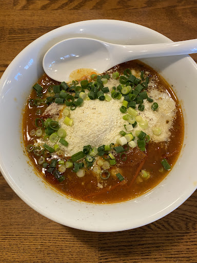 平日11:15に来店したところまだ開店前だが、一番乗り。食材の高騰などによりメニューが若干値上がりしていた。セサミンとまと870円と杏仁豆腐のコーヒージャムを注文。セサミンとまとは、胡麻がたくさん入っているため担々麺のような感じで味わいはマイルド。トマトちょっと苦手…という方でもトマトの酸味感がないのでオススメ。杏仁豆腐はどちらかというと牛乳ぷりん寄りの味で、そのままだと甘味も少ないがコーヒージャムと合う!口の中の清涼感。これは女性にぜひ勧めたい。トマトでヘルシーなラーメンだし、お店の中も清潔感があるのでデート向きのお店。雨天だったこともあるのか食べ終えるまでに3組で空いててラッキーだ...