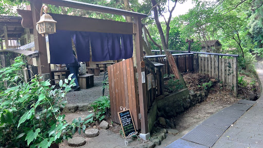 【店の雰囲気】 カウンター席は建物の中で、靴を脱いではいる小上がり的になってます。ガラスの扉があるので、天候の悪い時はこちらでいただくのだと思う。 晴れた秋口に行ったので、テラス?的でお食事をいただいた。木に囲まれており、お店の庭でいただいている感じ。虫が苦手な方はしんどいかもしれません。その分趣があって、緑に囲まれてとても気持ちがよかったです。ここでは味わえない秘境感。でも夏場や冬場のテラス席には行けないですね😅