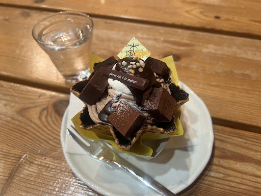 平日の17時頃来店。 モンブランが売り切れていたので、贅沢チョコレートパルフェ(¥800)をいただきました。 1人で食べきれないほどボリュームたっぷりで、ブラックコーヒーが合うと思います。 中にはプリンとスポンジが入っていて、ワッフルコーンを割りながら一緒に食べるのもおいしかったです! 他のケーキは¥500前後が多かったような気がします。
