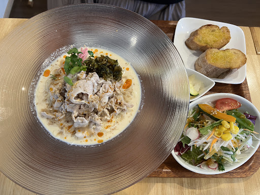 Read more評価が良かったので行ってみた。 まず、看板メニューで皆さんオススメのチーズカレーのパスタ。普通に美味しかったかな。生パスタを頼んだので、なんか焼きカレーうどんみたいでした。ドリアの方が好みかも。 季節限定冷しゃぶ豆乳パスタは美味しかったかな! セットのパンはおかわり出来ます、と言われましたが、美味しいわけでもなく、その気になれず。オリーブオイルがかかってましたが、別添えだと嬉しい、あまり好きではないので。 キノコのピザも注文したけど、普通でした。 いずれも、家庭でも作れそうなものばかりで、皆さんの評価が良かっただけ...