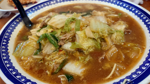 ニンニク好きな人は必ずや旨い!と感じること間違いなし! 味付けは濃いめ。 麺は乾麺で細と中の間でストレート。 トロミありもOKなのでストレート麺に絡んでとても美味しかった。 単品のスタミナラーメン950円 主人はスタミナA定食1200円 焼き飯は半分と言いながら、そこそこ多さを感じた。 単品で鶏の唐揚げを注文したが味も滲みていてジューシーで美味しかった。(6個入り) 定食の白ごはんはおかわり自由。