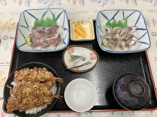 Read more近くで仕事の都合が有り店主が少し丸くなった?との情報も聞いたので様子見がてら寄ってみました😁が······浜の人間の人柄も相まって相変わらず夫婦そろって口が悪い😅 それも楽しみで寄ったワイはいいが隣の東京から仕事で来てたスーツ姿のサラリーマンの3人組は「いつも臭い魚食ってんだろ」だのつみれが美味しいって言えば「それじゃつみれだけしか旨く無いって事か」とかあー言えばこう言うのオンパレードでご愁傷様🤭 勿論ワイにも飛び火で 店主→「イワシ丼大盛にするなら半ライス別に注文すればアジ刺や叩きの味が解らなくならないでしょ」←上から目線🤭 ワイ→「おう、その手もあったか、じゃライスも貰おうかな🤔。 店主→「いや、そんなに食わなくてもいいよ🥴」←店主困惑🤭 の様な会話だがそれなら始めからその様なセット物のメニュー作るなちゅーの😂 確かにアジの刺身は型は良くは無いが新鮮プリ旨っ😙なめろう(ここらの地域では「鯵の叩き」と言う)は味噌や醤油·薬味も控え目で鯵本来の味を重視させてるタイプで薄味だが悪く無い😉イワシ天丼もタレはかけ過ぎずで何故かイワシの味が濃い感じがして旨い😙 精算時には「ごめ〜ん!細かいの持ち合わせ無いわ」っと5千円札出すと「いいよ、いいよ」っと心良き対応の店主😁 多分さっきのサラリーマンが無言で5千円出したら文句のオンパレードだった事間違い無し🤭 こちらのお店は店主の言う事に「はい、はい、」っと答えてるだけでは説教地獄になるので日和らずに対等対応すれば店主も認めてロックオンして来る事はありませんのでハキハキした対応でプチトラ...