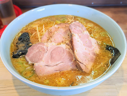 追加 1年ぶりに行って来ました 常連さんなどに指摘されたのか かなり 薄味になってました…(-""-;) かなり 薄いです。 この店の豆板醤は通常の物ではなく、鷹の爪のラー油漬けなので塩加減は足せません で、薄いから 脂っこさが余計に目立って スープは 脂を飲んでいる感じでした 画像を見比べてもらうと 今回はスープの色が白っぽくなってるのがわかると思います 相変わらず チャーシューは美味しい 麺も中太麺で美味しい 前回は 塩辛いだけで そっちの方が...