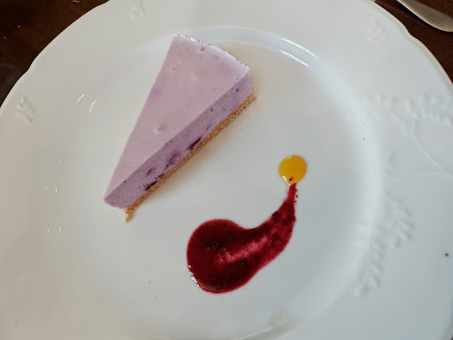 デザートは、チーズケーキ。 横に添えてあったオレンジ系のソースが美味しかったです。