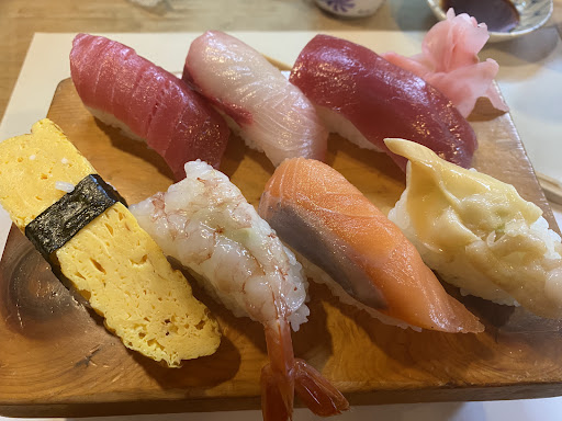 すぐ横の駐車場に車を停めて、入り口を開けるとお昼時にも拘らず、客が全くおらず、ちょっと意外でした。 休日でもランチがあり、1700円で7カン、大盛りは700円増しで10カンという事で大盛りを注文。 先に大根の甘酢漬けと小さなサラダ、そして回らない寿司屋さんらしく海老の頭が入った味噌汁が出てきました。 さらに少し経ってから下駄に乗ったお寿司が出てきました。 久々に入った回らない寿司屋でも、こんなにネタとシャリが大きい店はありませんでした。 ここ数年はチェーンの回転寿司ばかり食べてたので、体積で言うと倍ぐらいになるのではないかと思う大きさでした。 失礼ながら、カニを見た時はカニカマだと思って食べたら本物でびっくりしました。 回らない寿司屋でこの内容と価格ならリピートしてしまうと思います。 2025年4月 連休前半2日目の平日だったので、もしかしたら臨時休業とかもあるかなと思い、事前に電話で確認したところ、ランチ営業をやっているという事だったので再び伺いました。 前回同様、シャリもネタも大きめでした。 鮪は回らないお寿司屋さ...