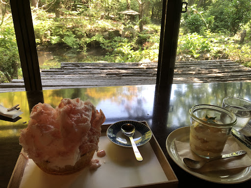 Read more6〜7年前に初めて訪れて、年に何度か美味しい珈琲とかき氷を頂きに通っておりました。コロナ禍を挟んで久しぶりの2023年4月の下旬。日曜日のランチを初めて頂きに参りました。当日、11時前に電話で予約。11時30分に開店。予約時刻に来店が遅れた場合はキャンセル扱い。との説明があった。なんだか高飛車!急いで11時15分頃に現地到着。何やら新しい建物が建っていたり、お庭の手入れも以前より格段に良くなっております。しかし、11時25分になるまで、なんの案内もなし。今日は天気が良いので足元の悪いところでも待てたが。雨なんか降って来たらこんなところで傘を持って待たされるのか?なんだか印象が悪くなってる。 ランチは玉子かけご飯のおばんざいセット。¥1,600、ご飯と玉子をおかわり ¥220して、みたらし団子と焙じ茶セット ¥600 いずれも量は少な目&上品な見栄えです。 連れが珈琲系のホットを注文し、そのカップの口元が欠けていたのが、一番アカンなぁ。古くて朽ちかけた建物であっても、内部は清潔に保たれていてこその飲食店。汚くて嫌になることはなくても、カップの口元が欠けているのに気付かずに提供してしまうのは、飲食店のスタッフとしては失格。しかも運んできた若い男性スタッフもそれに気づかない?もしくは、分かってて提供するのは絶対にあってはならない。今日も客で混雑している。支払いの際に一言カップの件を忠告しようとも考えたが。やめておいた。商売の拡大に勤しんでいるうちには、改善されるだろう。今回は評価を3つ⭐️⭐️⭐️減とさせていただきます。ランチもみたらし団子も、価格としては半値が妥当な額。再訪は暫くはせずに静観します。 以下は5年以上前のクチコミです。この頃は朽ちかけた建物も傷だらけのソファも、何気に落ち着いた雰囲気で、馴染んでいたのだが。 人気に驕り、当たり前のことができないようでは。