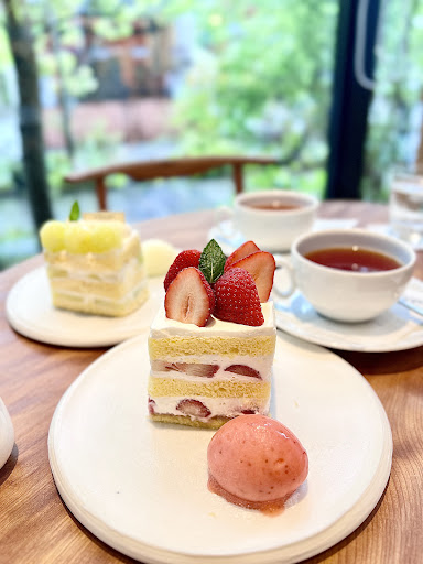 . 苺づくしのショートケーキ ドリンクセット 1,320yen ホットミルクティーを。 アッサムでした☕️