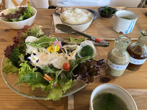 Read more感谢主🙏我们从大阪自驾去三田市探访那里的教会的弟兄姊妹,午餐偶然发现这家餐厅;体验真正的日本农家乐;完全无公害的蔬菜,超级喜欢沙拉拼盘;烤肉也是美味😋,餐后一杯天然咖啡☕️(250日币);参观了菜地:土地无除草剂(全靠人工除草);花椒树👍老板娘热情❤️服务;为这一家人及她们的生意祈祷🙏以后会定期带朋友过去;午餐后,回程可以去奥特莱斯(最人气)购物;幸福😊的一天;以马...