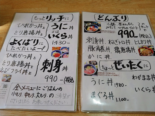 2024.8追記 以前のように丼とランチセットが出来なくなっており、ランチセットは刺身丼のみになっていた。 鶏唐揚げ丼を注文し、値段が1320円と高めなこともあって、なかなか豪華だったが、個人的には以前のよう...