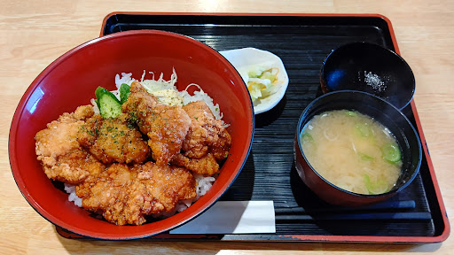 唐揚げ丼の唐揚げは1個がとても大きく、中から肉汁があふれてくるのも相まってとても食べ応えのある唐揚げだった。 味付けが少し濃かった様に感じたが、唐揚げに掛かっているタレとの相性が良く、ご飯が進む味付けだった。
