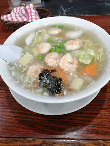 えびラーメンですが、 細麺と勝手にイメージしていましたが、以外にもやや縮れのある中麺でした。麺の茹で加減は、固くもなく柔らかくもなくモチモチ感味わえる麺です。 スープはあっさりした塩ベース。胃に優しい感じで、脂っぽいものばかり食べる私にはたまに丁度良いです。 具ですが、えび、キクラゲ、白菜、人参、ネギがトロミがかって調理されており、うん美味い!!えび🦐はプリップリでしたし、白菜や人参も丁度良い感じで歯ごたえがあり、やはり中華屋さんは調理が上手だなぁと感心させられました。えびの量も少量かと思いきや充分な量が入っており、満足感が得られます。