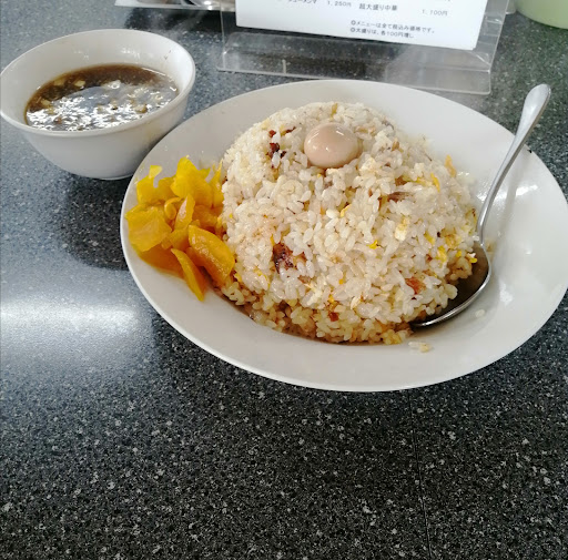 燕三条系ラーメン、背脂チャッチャ系で有名なラーメン屋さんですが、チャーハンが美味いと聞きつけ来店。 ラーメンは何度か食べたことがあったので、チャーハン大盛りを注文。 うずらの卵と漬物が乗ってますが、シンプルなチャーハンです。具に玉子、玉ねぎ、チャーシュー(小刻み)の物が一緒に炒められており、ご飯は硬めのご飯でチャーハンに合ったご飯が使用されていました。 パラパラではなく、油からかしっとりしているチャーハンで盛りも良く、美味しくいただきました。 スープもラーメンスープでしょうかね、チャーハンと非常に合ったスープでした。 大盛りでしたが、チャーハンでお腹いっぱいになったことはあまりありませんが、龍華亭さんは盛りが良い! ただ、ラーメンも美味い...