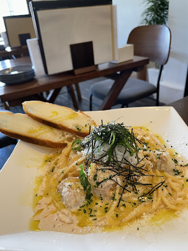 Read moreランチタイムに伺いました。土曜でしたが何席か空きがありました。 店内ベビーチェアあり。ホコリ被ってました。椅子もシミが目立っていました。 クリームパスタおいしかったです。が、幅のある皿のふちまでオリーブオイルがかかっているのに、そこに指を付けてパスタを差し出されたときは少し食べる気を失いそうになりました。 カルボナーラは時間がかかるそうで、実際に遅かったです。最初に来たクリームパスタが食べ終わる頃に近いくらい。パスタが芯が残ってる?と思うほど固めでした。味は美味しかったです。 4種のチーズピザは薄めの生地。白く粉っぽく感じ、膨れてる所は全て黒く焦げていました。ソースやチーズは美味しかったです。ブルーチーズが載ってました。 ガパオライスは美味しかったです。 プラス350円でドリンク、サラダ、デザートが付きます。ホットコーヒー美味しかったです。サラダは小鉢。 デザートは指先程のメロンとスイカ、パウンドケーキが3切れ(試食サイズ)。ホイップクリームが一絞りでした...