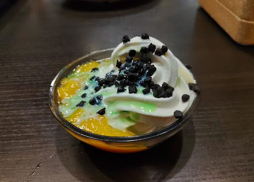 デザートはソフトクリーム、ワッフル、かき氷、綿あめがあり、練乳 黒蜜 白玉 フルーツカクテルなどトッピングがあります。