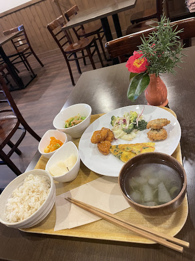 Read more野菜嫌いですが物は試しと土曜のランチ時に行ってきました。人は少なかったですが店員さんの接客が丁寧ではじめての自分も安心して利用できました。 料理の種類はそれほど多くないなと感じましたがどれも美味しく、食べやすい味付けがされていたように感じました。 桜のシフォンケーキをデザートでいただいたのですが非常に美味しかったのでまた食べにいきたいです
