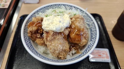 Read moreこの店舗には2度と行きたくないってか行かない! 時間帯なのか、タイミングが悪いだけだったのか、その時間に居た女の定員さんが最低最悪だった。 「いらっしゃいませ」も言わず、水やお茶も出してこない。あげくの果てに「すみません」と注文しようと呼んだのに、注文すら取りに来ないありさま。。。 他に定員さんがいないのか店内を見渡せば、食べ終わった後の食器も片付けてないのが目立った。 キョロキョロしていたら他の男の定員さんが「お決まりですか??」と聞いてきてくれたので注文出来ましたが、その定員さんもお水やお茶も出してこない。。。 あまりにも気分が悪くなったので急いで食べ店内を出ました。 牛丼と言えば吉野家なので他店舗はこんこ利用させていただきますが、この店...