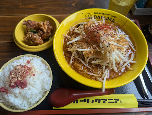 だるま食堂」は青森県三戸町にあるにんにく専門の食堂です。2015年にオープンし、にんにくをふんだんに使った料理が特徴です。特に人気のメニューは「ギガーリックラーメン」で、にんにくを丸ごと一個使ったインパクトのある一品です