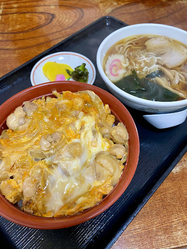 Read more2025.4 カツ丼+半ラーメンセット1050円 GW。前を通るたびに気になってたこちらへ🚙 開店10分前1番。後5。 日曜日もセットメニューがあるので、開口一番健さんセット。 たまたまなのかえらく時間かかって着丼。他のお客さんは更に待ち😅 先ずは半ラーメンを。 ほんのり魚介の効いたノスタルジックラーメン。 麺は自家製手打ちっぽいね。決して洗練されてないけど、それがまた味があって良いねえ。 カツ丼は豚も衣も厚いタイプで、程よい甘辛さと衣の香ばしさが何とも言えない美味しさ。けっこうワイルドで食べ応え満点。ごはんもめちゃくちゃススム味でたまりませんね。食後のコーヒーがついて1050円はリーズナブル。大満足のランチでした。次回はカツカレー🍛ごちそうさま⁉️ 接客もとても感じが良いし、近くにあっ...