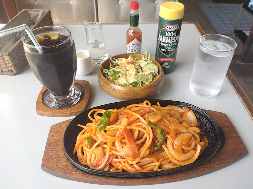 Read more前から気になっていた喫茶店。ちょうどお昼どきに通りかかったので、思い切って入ってみました。一歩店内に入ると昭和の時代に逆戻りした感覚になります。昔懐かしい純喫茶と言う感じで、よくぞこの時代まで残っていてくれたと言う想いになりました。フカフカのソファーに腰を下ろすと、ぐっと沈み込む感じで「そう言えば昭和の喫茶店はこんな感じだったなぁ」と懐かしさが込み上げてきます。メニューも正に純喫茶。喫茶店といえばナポリタンだと言う事でAセットを注文。ナポリタンにサラダとドリンクが付いて900円(税込)。アイスコーヒーは正しく喫茶店の味、サラダも美味しい。なにより鉄板に載せられジュ~ジュ~音をたてて運ばれて来たナポリタンは期待通りの昭和の味。粉チーズ、タバスコを振りかければ、益々昔懐かしい味になりました。年配のご夫婦で切り盛りしているようで、とても上品で丁寧な接客に恐縮するばかりでした。仕事に疲れ癒やされたくなったら、また来てみようかと思います。昭和の気分を味わいたい方には、とても...