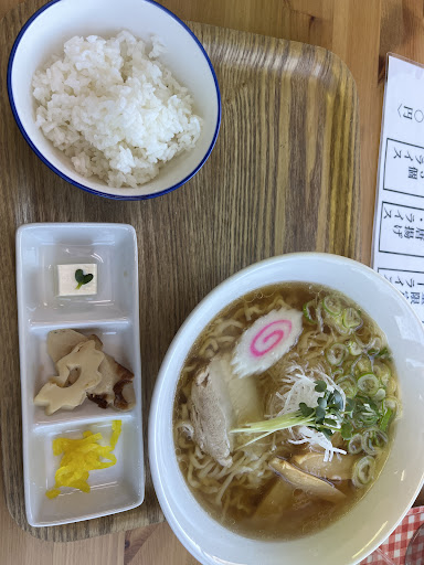 Read moreラーメンは佐野ラーメン特有のピロピロ麺で喉越し良くスープに良く絡んで好みでした。人によっては後半柔らかすぎに感じるのかも?スープも美味しく、後味に感じるいい香りコレなんだろ?香味野菜?生姜?付け合わせのツマ、カイワレの香り? 派手さは無いけど飽きの来ない味良いだと思いました。 餃子も美味しくて、餡に野菜の甘みと旨味あって味があり、皮とのバランス良く、大きさもほどよい感じでした。ランチセットのコスパが最高。 ライスは佐野のラーメン屋は不味い所多いのですがなかなかのお味。 チャーシューはとても美味しいのですがちょいと小さいかな。一般的には十分な大きさなんですけどね。(佐野ラーメンはデカいところ多いから比較しちゃうのかも) まあ原料高のこの時代仕方ないのかと。 店内の席は感覚広めでゆったりー。 店員さんの接客も良い感じー。