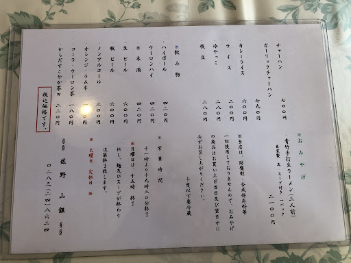 Read more他店の佐野ラーメンを食べに行こうとしましたがかなり混み合っていたので比較的空いているこちらにお邪魔しました。 普通のラーメン(700円)と餃子を注文しました。 味の好みは人それぞれだと思っております。 麺は手打ちのようですがめちゃくちゃ伸びていてはっきり言ってここ数年食べたラーメンで1番美味しくありませんでした。 口コミを見るとこの箸で持ち上げただけで切れてしまいそうな麺が美味しいと言ってる人もいるので何とも言えませんが自分達3人は全員がガッカリしました。 これが佐野ラーメンだよと言われたら2度と佐野ラーメンは食べないですね。 佐野餃子は大きいと聞いていましたがこちらの餃子は普通の餃子でした。 このお店だけが空いている理由が分かりました。 他のお店を3件周りましたが120分待ち等だったので美味しいのでしょう。 空いているからここでいいやと入るのはオススメできません。 褒めるところとしてあげるならば値段が安かったというだけですね。 消化に良いのびのびの麺が好きとい...