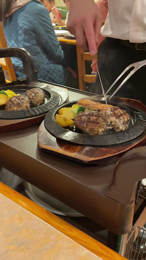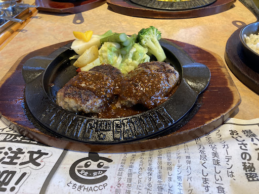 Read moreクチコミを書くか迷いました。もう2度は無いと思うのと同時に今後の客に参考にと考えました。9/22(月)午後三時に遅い昼食の為に一人で訪問しました。栃木県の有名チェーン店としてマスコミにも多く取り上げられ繁盛店の名を欲しいままにしている店です。今回初めての訪問でしたので楽しみでした。午後の客数も少ない時間を狙って訪問しました。広い店内に4席のグループ客。ちょっと無愛想な店員さんの案内で着席。マニュアル通りのメニューの説明。初めての客には早すぎて理解できない部分もありました。説明終了後、即、調べて来た名物の「爆弾ハンバーグ&ガーリックライス」を注文しました。待っている間に楽しみが倍増しました。料理が運ばれ、お決まりの店員さんの切り分けからの配膳にワクワクするばかりでした。ただ、ソースをかける際に油はね避けのシートをかざしたのですが、音も油はねも期待外れでした。食べ始めて最初のナイフが硬さを感じ、口に運び冷たさも感じました。鉄皿を触り温度の低さを実感しました。店員さんは、毎日の仕事で違和感は無かったのでしょうか?音や油はねは実感できたと思う夏ですが?楽しみに訪問したお店だったので1.725円の料金が高く感じました。夏空が一段落し、どこか涼しさを感じる訪問でしたが、すっかり身も心も寒...