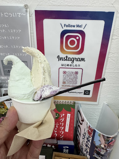 Read more佐野観光農園アグリタウン内にあるジェラートショップ。 アグリタウンが道の駅のような感じで広い無料駐車場がある。外にテント付きテーブル席やベンチがあって、買ったらすぐ座って食べられるのが良い。 インスタフォローやアグリタウンの買い物レシートで特典があり嬉しい。2025年4月上旬休日、食後のおやつタイムに初訪問。 温かい日で到着すると6組くらい待っていたため10分近く並んだ。入店は2組まで。インスタフォローを申告しトリプル(カップのみ)にした。 冬季限定の生いちごミルクはハーフカットのイチゴが付いてきて嬉しい。ピスタチオ、ティラミス、フレッシュミルク、フレンチショコラ、おまけに付けてくれた抹茶とショコラノワールといろんな味を食べた。全部美味しかった。 毎月メニューが変わるみたい。インスタに載って...