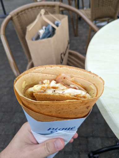 私は目玉焼きとベーコンの入ったコンプレを。 空いていましたが出来上がりまでは10分弱かかった気がします。なので、混雑時はもっと待ち時間は長くなると思われます。