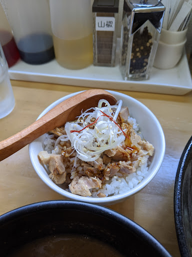 8/24佐野では珍しいつけ麺屋さんがあったので行ってみました。 1時頃到着で並びはありませんが店内は混んでます。 食券を買って店内へカウンターに案内されました。 結構ゆったりした席で普通なら二人分位あります。 10分くらいで配膳、つけ麺中盛得のせとミニチャーシュー丼。 つけ汁はドロドロ系大宮の狼煙っぽい。 トッピングがてんこ盛りですごい。 ミニチャーシュー丼はお値段以上な感じです。 とても美味しかったです。 メニューに鶏白湯があったのでまたすぐ行きたいです。 帰る時には並びができてました。 人気店みたいです。