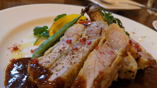 Read moreコロナ禍もあり、久々の訪問となりました。車での訪問でしたのでポークカツレツセットで。見た目も映えるお料理で、甘くスパイシーなソース、ピンクペッパーが効いたカツレツは素材の味もよく、お酒が欲しくなりました。それもそのはず。シニア・ソムリエのオーナーシェフはワインも日本酒もカクテルもスペシャリスト!お酒とお料理のペアリングを得意としております。メニューのチャートから好みのワインを選んで、お料理はそのワイン(日本酒もあり。)にあうものをおまかせで提案してもらう。そんな楽しみ方ができるお店です。ほんとは近くに住んでいて、気が向いたときにふらっとワイン1~2杯にプレート数種楽しんで歩いて帰るという使い方ができたらカッコイイですね。セラーのワインは相当なワイン好きでも楽しめそうなものがありますし、季節で変わるおすすめグラスワインもさすがのチョイス。(今回はフレンチオーク熟成のタウラージでした。)日本酒のラインナップも知名度より味わいや品質を重視した通ごのみ。コロナが落ち着いたら近くにホテルをとってゆっくり飲みに行きたいお店です。 お店の雰囲気も控えめながら英華発外の美が感じられ落ち着いた雰囲気です。デートや記念日にがんばった自分へのご褒...