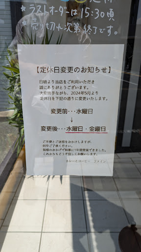 Read moreまたもや初めてなので星は4つにさせていただきました。 北浦の視察から帰りしなにたまには通ったことのない道で職場に向かおうとしました。 朝が早かったので食事を取れるお店を探しながらハンドルを切っているとカレーののぼりを発見。 最近は入ったことのないお店でランチをモットーとしているので迷わず入店しました。 メニューのシンプルさもインテリアもシンプルでお店の方の接客も美しかったです。 じゃがいもと玉ねぎを沢山貰ったとのことでビシソワーズをサービスして頂きました。 牛すじカレーとチキンとトマトのカレーの合掛けのダブルカレーの大盛りを食べましたが美味しかったの一言です。 不満があるとすればカウンターに座った際に冷蔵庫の中が丸見えになっているので隠したほうが良いかなと思った事と、個人的には屋外に灰皿があったら良いなと。 私個人がコーヒーを飲まないのですが、こちらのカレーを食べて食後にコーヒーを飲めたら幸せだろうなと思いました。 また美味しいカレーを食べたくなったら寄らせてもらい...
