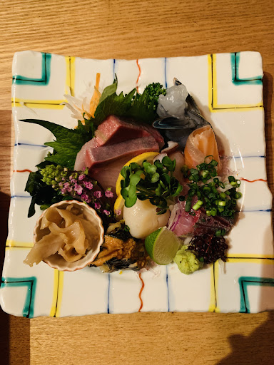 ご注文内容は ◆お刺身盛り合わせ ハマチ、アジ、タコ、サーモン、あわび 生エビ(ブラックタイガー)、ホタテ、ミル貝 とボリューム満点 しかも全て新鮮で美味しかったです。 特にホタテはとてもおっきくは食感も良く ミルキーで濃厚な味わいでした。