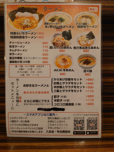 らいちラーメン 120円 濃厚魚介つけ麺 980円 キッズセット 650円 ラーメンマン 650円
