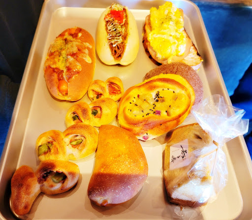 ・こちらのパン屋さんでは、取り扱うパンは常時100種類以上だそうです。 ・その雰囲気はパンを選んでいる間も感じました。目の前に広がる種類だけで20-30種は確認できて、さらに、並んでパンを選んでいると、何度も何度も店員さんが行ったり来たりして、少なくなったトレイを整理しては新しいパン置き場を確保して、別の種類の焼き立てパンが運ばれてくる。そんな流れが目の前で行われております。仕切りのないキッチンでも常時、5-10名くらいの方がパン作りに励んでいらっしゃる。機械のラインなどならまだわかりますが、人手を常にこれだけ稼働させて、どんどん新しいパンを焼くってすごいですよね。もし余ったら、、、なんてことがないほどに沢山の人が訪問するからこそ、この積極的すぎる豪華絢爛な陳列を常時保っていられるのでしょう。 ・他のパン屋さんにはない、圧巻の景観でした。