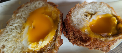 ・知り合いから「おにぎりもあるよ」と伺って訪問したモノの、まったく調べずに訪問して、パン屋さん側の店内であたりを見回してもおにぎりがなかったので「あー、今日はおにぎり販売していないのか」と勝手に思い込んでパンのみ購入して退店。その後、よくよく調べてみると、裏手側におにぎり屋さんがあることを知り、悔しさMAXでした笑 まあまあ、また訪問する楽しみが増えたと思うことにします! ・さらに、パン屋さんのほうで、レジ直前で美味しそうに見えた「ディゴルゴン」というパン。こちらが別のサイトさんで「こだわりの詰まったパン」と紹介されていて、これまた「あー、買い損ねた~!あの時手を出しておけば😢」と後悔。 ・なんにしてもしっかり調べてからの訪問がよい、と言うことですね💦 良いお勉強になりました。