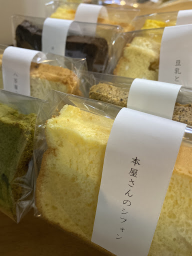 2020年8月1日より、カフェ営業からシフォンケーキ専門店に営業形態が変わっています。 本屋さんが作るシフォンケーキ。 侮る事なかれですよ! 毎朝3時より焼き始められるシフォンケーキは8種類。 作り置きでなく、その日に焼かれたシフォンケーキなので、素材の香り・ふわふわ感が凄い! 素材にもこだわってあるので安心安全。 大人も子供もハマる美味しさ! また、8種のシフォンケーキがセットになった商品もあるので、事前に予約してお土産に持っていくと凄く喜ばれると思います! お店のスタッフさんも凄く感じが良くて、寄り添った接客をされるので、良い意味で直ぐお友達になれそうな感じですよ! ...