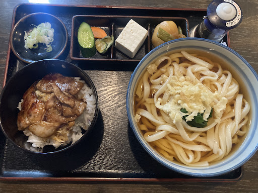 平和通から横道にそれた場所にある、隠れ家的なうどん屋さんです。 外観&店内からして一軒家を改築したつくり。営業時間がお昼どき2時間のみと見ると、ここで生活をするお金を稼いでいるのではなく、趣味の一環で営業している感じ。 店内は、カウンター5、座席2とそこそこの広さ。おばちゃん2人でキリモミしています。 今回は開店11時半と同時に来店したのですが、早くも店頭駐車場(3台駐車可)に1台停まっていました。店内に入り、うどんができるまで待つ間もお客さまがちらほらやってきます。ほとんどが常連客なのか、店員の声がけが「あら、いらっしゃい」と若干違います。 ひとまず、うどん日替わり定食(たぬきうどんと豚丼のセット)を注文。 うどん・豚丼セットのほかに、お口直しの一品料理的なのが嬉しい。 うどんはモチモチしていてコシがあり、つゆはダシがきいていてやさしい味。豚丼は、ご飯の量が少々すくなく感じましたが(定食なのでしょうがない)どちらもとてもおいしくいただきました。 食後に再度お品書きを見ると、カレー、鍋焼きなど寒くなるとたべてなる品が多いので、次回はもうちょい寒くなってきたら伺おうかと思います。 冒頭にも書きましたが、駐車場が3台停められず、店頭の道路も狭い為、路駐はできません(帰り際に路駐が1台いましたが、車出すと...
