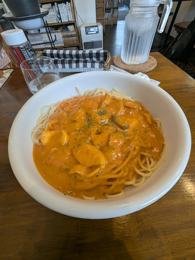 Read moreコープほんどおり店の真裏にある夫婦で経営されているパスタのお店です。 階段をのぼり店内に入ると、賑やかな声が聞こえています。 感じの良い奥さんに付き添われ、席に付きメニューを見ると、なんと13種類のベースとなるパスタソースから更に具材を選ぶことができ、目移りします。 悩んだ挙げ句、シーフードのカルボナーラを注文すると、更に更にアーモンドスライス・生卵など9種類のトッピングが無料と声がけされ(メニューの右下に書いてました)、なんとか注文完了。 待つこと数分、出てきたのはなんと、大きな器に入った大盛りのあつあつ茹でたて太麺パスタで具もたっぷり! どうやら、いわゆる大盛りがここのお店の普通盛りのようで、コスパ良すぎです(ちなみに、50円引で小盛りにもできるので女性・お子さまにも安心です) 私が店を出るころ、ランチタイムが終わる時間が近くなっても、次々にお客さまが来店されていました。 日中の営業時間が14時半までとやや短いのですが、次回来店する際には、事前に何のベースのどのトッピングのパスタを食べると決めてから伺いたいと思います。 テイクアウト可能で、駐...