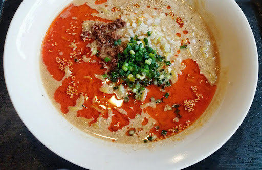 Read more「味噌坦々麺」(¥990) 美味しい坦々麺です。すり胡麻ドロドロの濃厚タイプではなく、見た目より遥かにスッキリした味わい。味噌の甘味と自家製ラー油の辛味のバランスが良く、誰にでも好まれそうな食べやすさ。