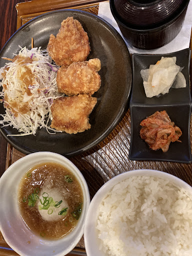 Read more夕方の早い時間から利用しました。 駐車場はGEOさんとも併設されているためか、停まっている車の量はぼちぼちでした。 店内は空いていて、ご案内してくださった女性店員さんの笑顔やハキハキした声が、清々しい気分になりました♪お店の好感度が上がります(^ω^) おろし唐揚げ定食(3個)をいただきました。 3個でもなかなかボリュームがあります! マヨコーンピザを連れが注文したので、お裾分けしていただきましたが、外側がパリパリで、内側はしっとりした生地で、好みがあるかも知れません。大きさもなかなか大きいんですよね〜(^o^) レジに入った若い女性店員も、応対がハキハキしていて、好感度がさらに増します。 留めは、宅配の荷物をたくさん持った若い男性店員さんにドアを開けてあげると、大丈夫です!と、明るい声と笑顔で反応が返ってきて、この店舗には明るい店員さんしかいないんじゃ無いかしら?...